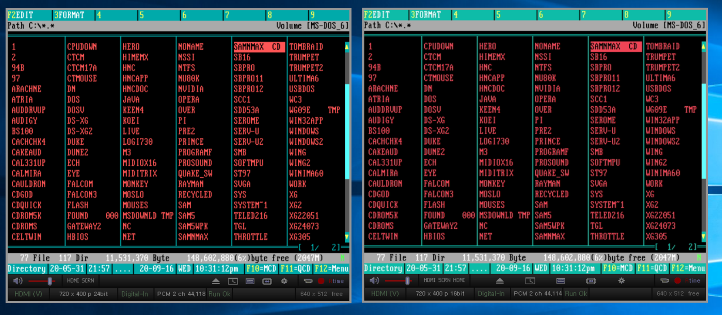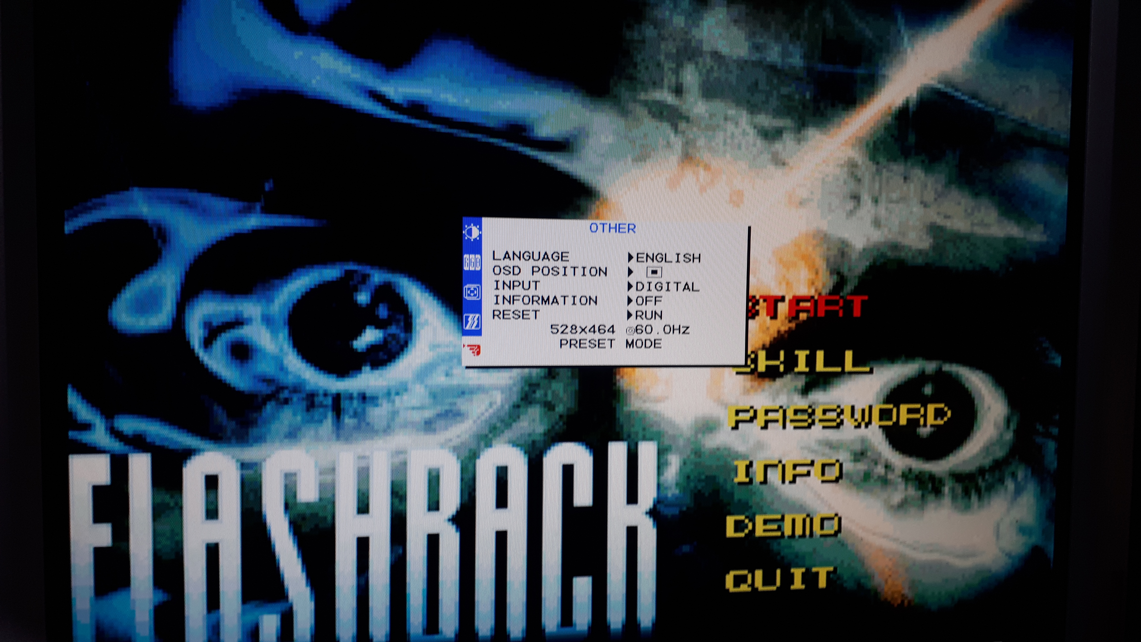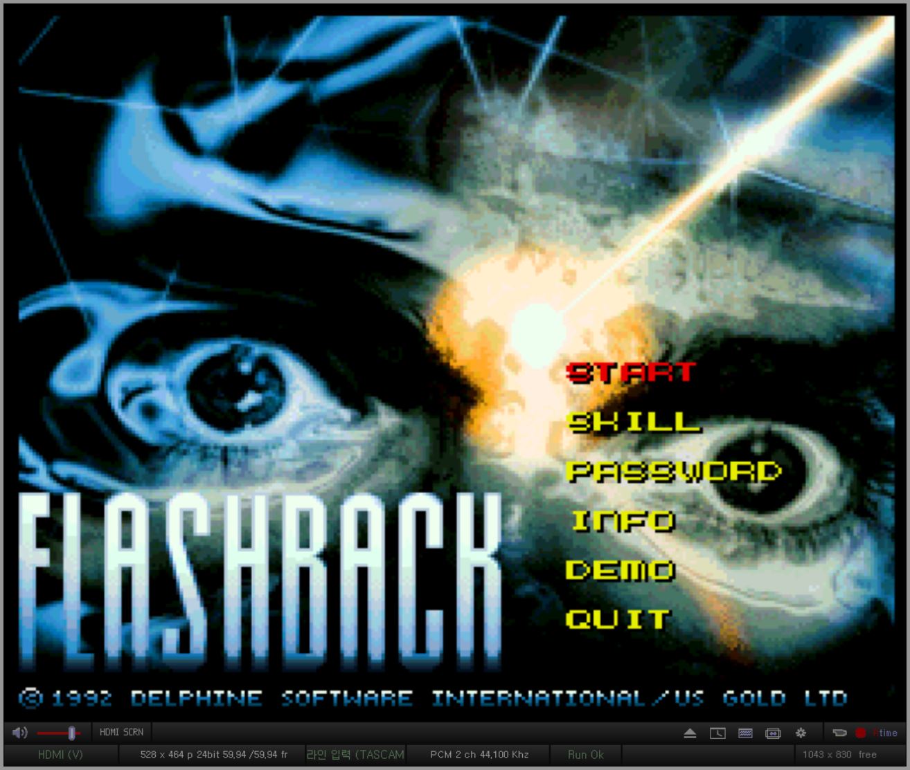 그리고 1분50초부터 둠을 실행하는데요 .둠은 본 게임에 들어가면 해상도가 640x400 가 되는데 X 4K가 이걸 딜레이시키는것도 모라자 잡지를 못해 검은 화면을 출력시킵니다. 보시면 한 3번 정도 둠 실행/종료를 반복하니(3분) 비로소 둠1의 화면을 출력시키게 됩니다. 그 뒤에 528x464 해상도인 플래시백은 한번에 출력시켜주네요.(딜레이는 있습니다.)