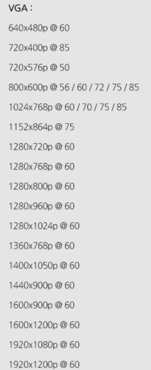 더하여 VGA입력의 지원해상도가 아래와 같습니다. 720x400p를 85hz까지 받는것이죠.