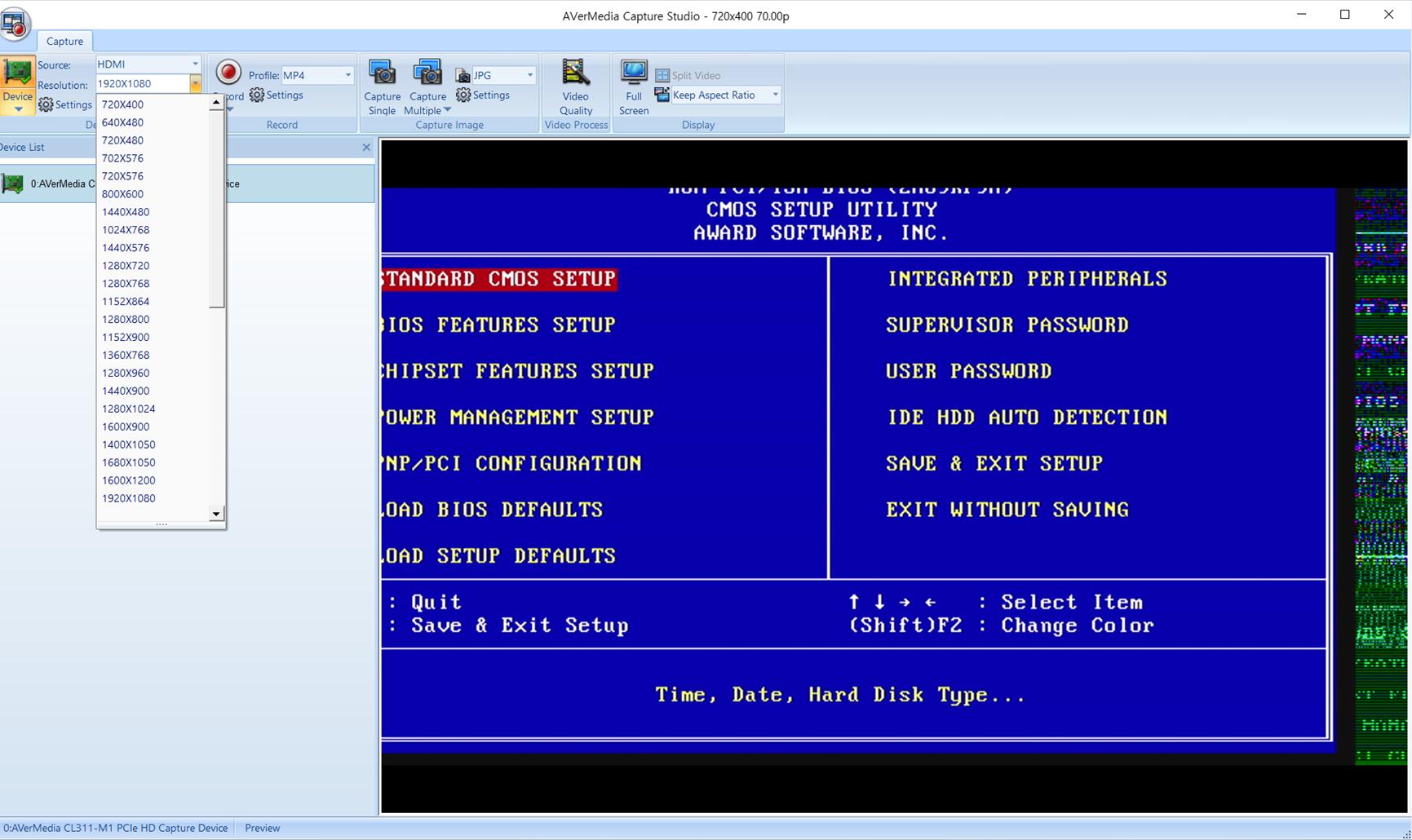 SDK1과 이전에 쓰던 에버미디어의 캡쳐프로가 도스컴의 DVI를 물리면 해상도 상관없이 아에 화면이 안나온 것에 비하면 많이 발전은 했습니다.
