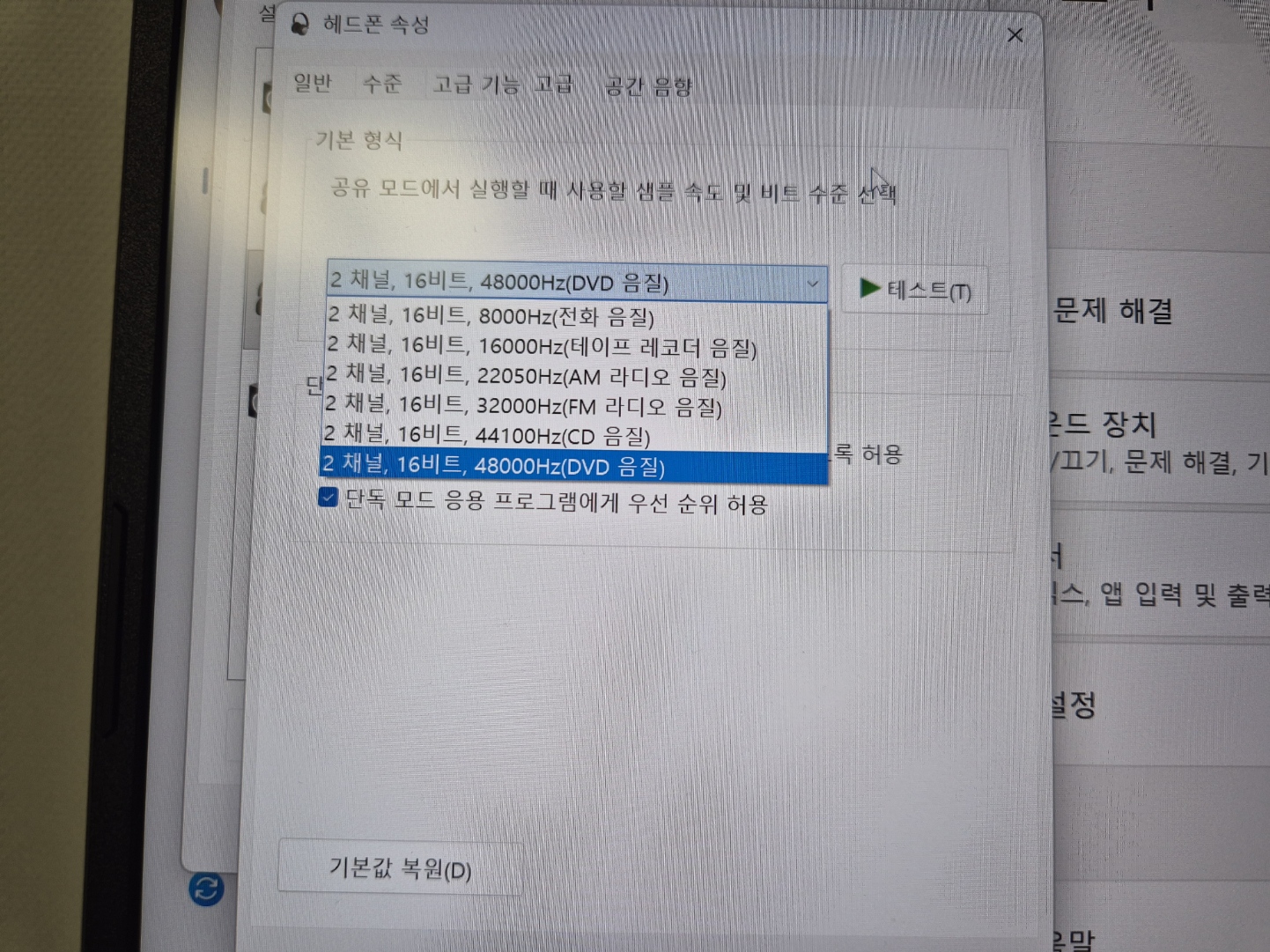 아래 처럼 16비트 48khz 가 최대인데 아무래도 상대적으로 다른 제품들... 96khz지원이라던지...